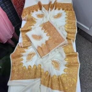 3-piece Satin Silk Unstitched Suitwith beautiful Botta Tilla #9