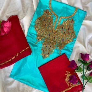 Step into timeless grace with our exquisite collection of Kashmiri Suit Sets available online. Designed for women who admire elegance, each suit features handcrafted embroidery including Tilla, Sozni, Aari, and Zari work, representing the rich culture of Kashmir.