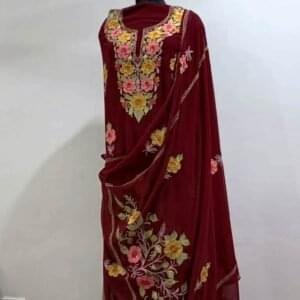 Step into timeless grace with our exquisite collection of Kashmiri Suit Sets available online. Designed for women who admire elegance, each suit features handcrafted embroidery including Tilla, Sozni, Aari, and Zari work, representing the rich culture of Kashmir.