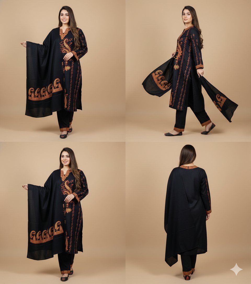 Tags: #KashmiriFashion #SozniWork #PolyWoolSuit #WinterCollection #EthnicElegance #KashmiriEmbroidery