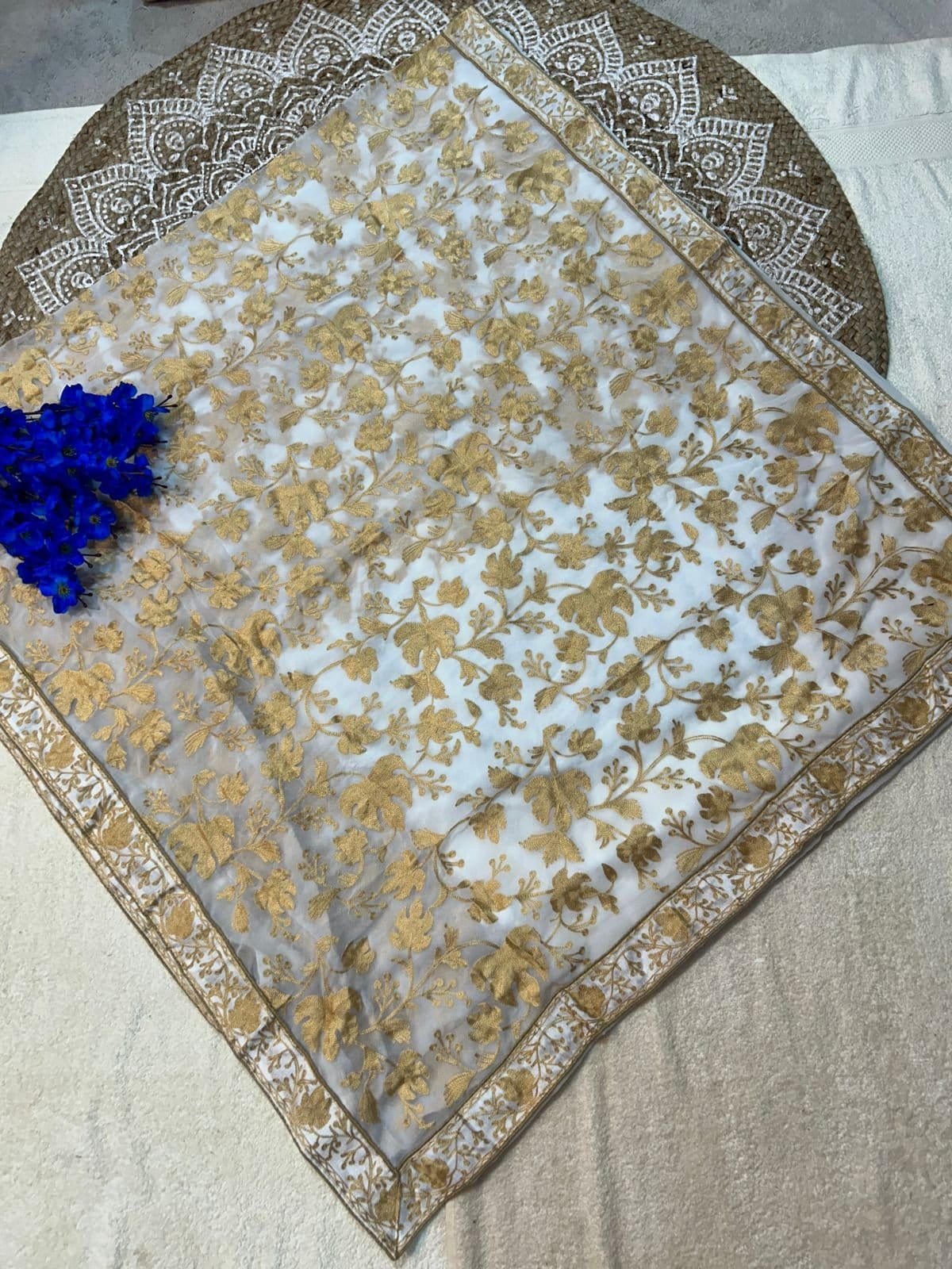 - Handcrafted by skilled Kashmiri artisans, each saree is a masterpiece that reflects the cultural heritage and artistry of the region.