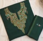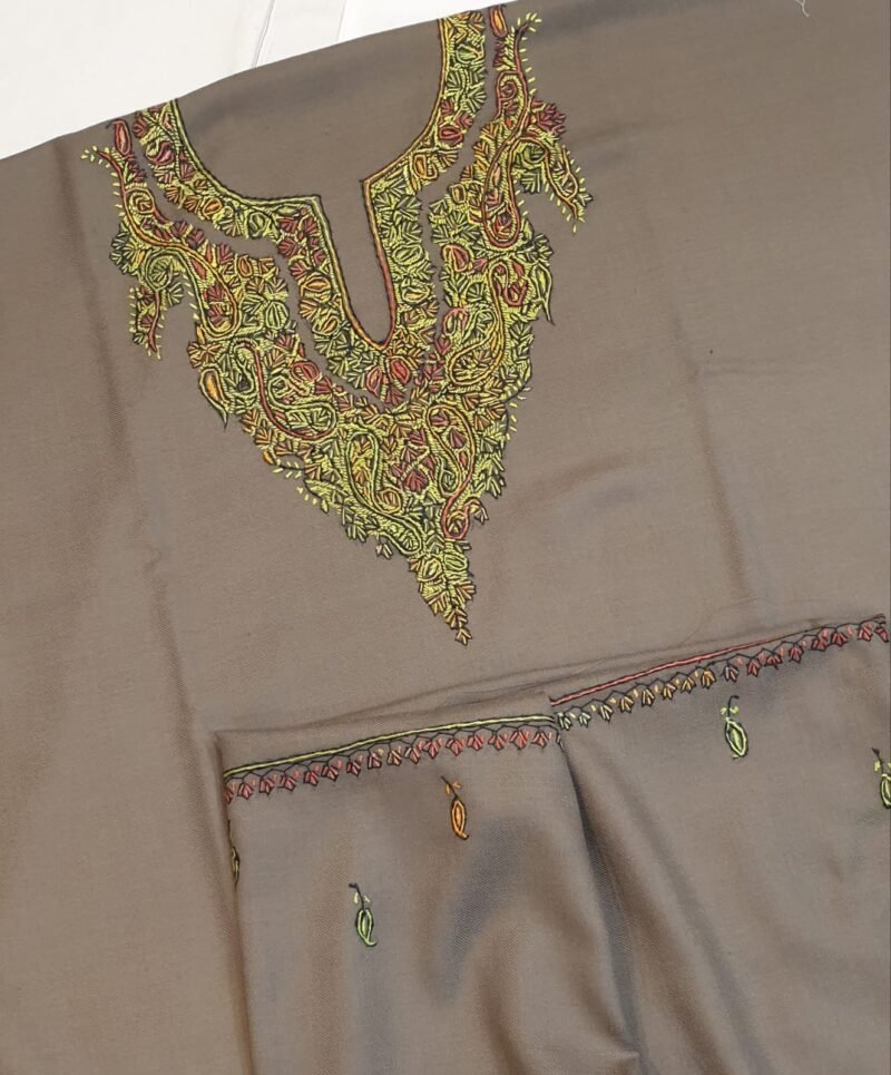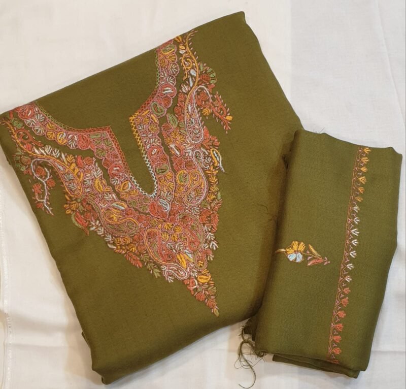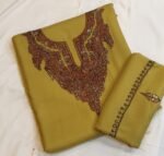 Each suit in this collection features handcrafted Sozni embroidery, renowned for its fine stitches and elegant patterns inspired by nature, flowers, and traditional Kashmiri motifs. The embroidery work enhances the beauty of the fabric, creating a luxurious yet graceful outfit suitable for both casual and festive occasions.