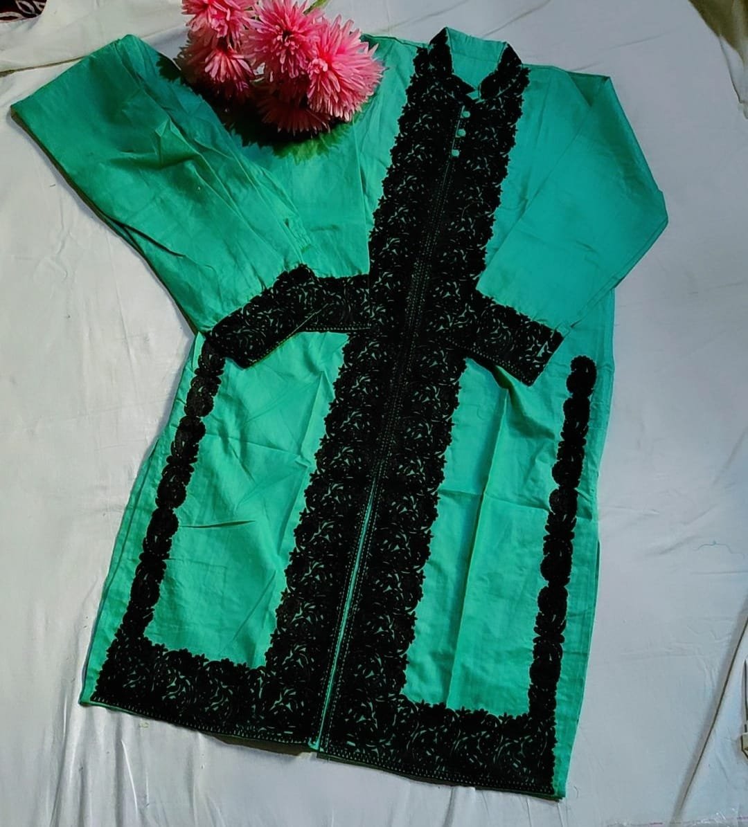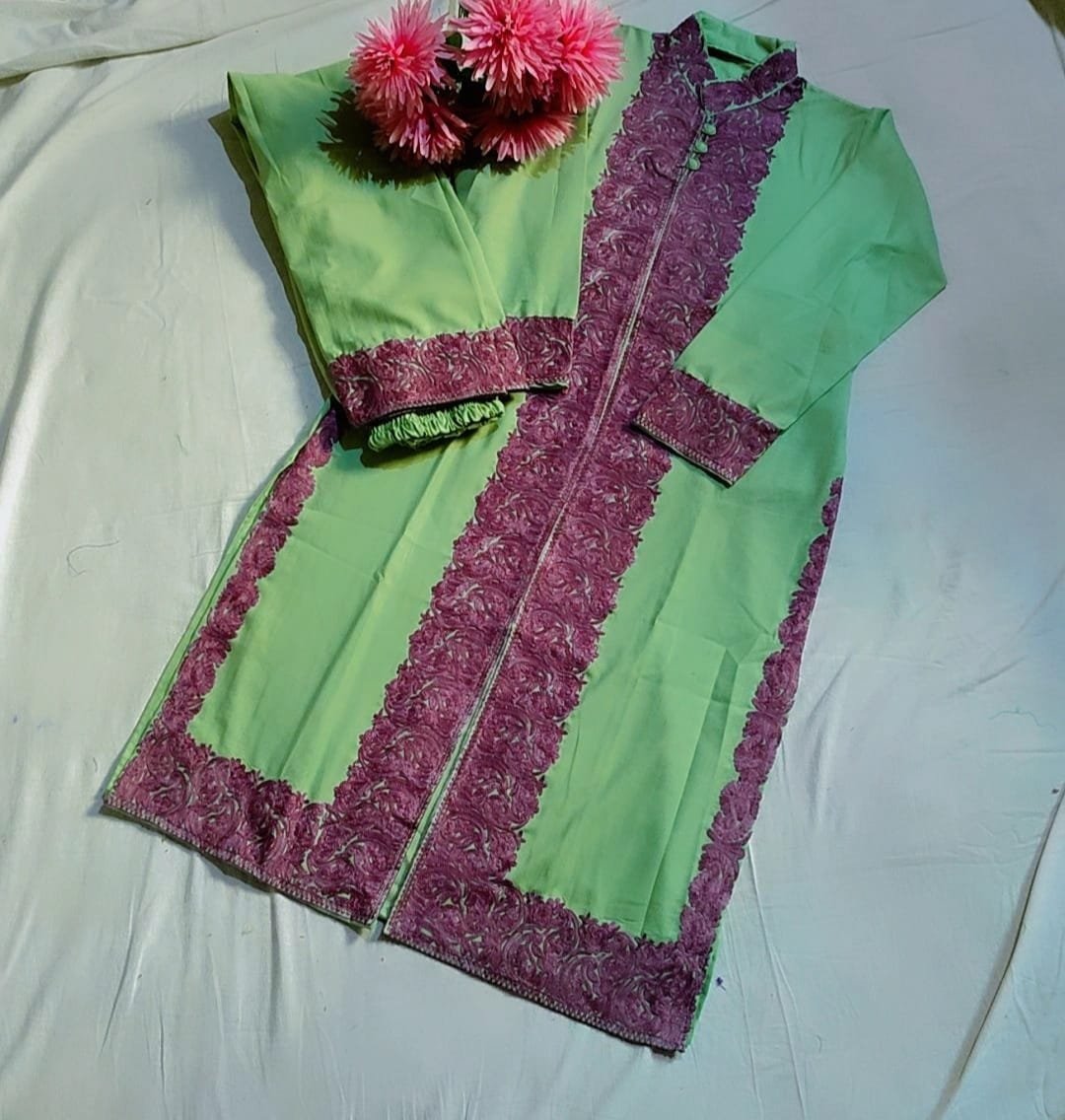 Step into elegance and tradition with our latest creation: the Kashmiri Ari Work Centre Slit Kurta with Plazo, crafted in pure Ruby cotton, tailored to perfection for the modern woman who appreciates both style and comfort.