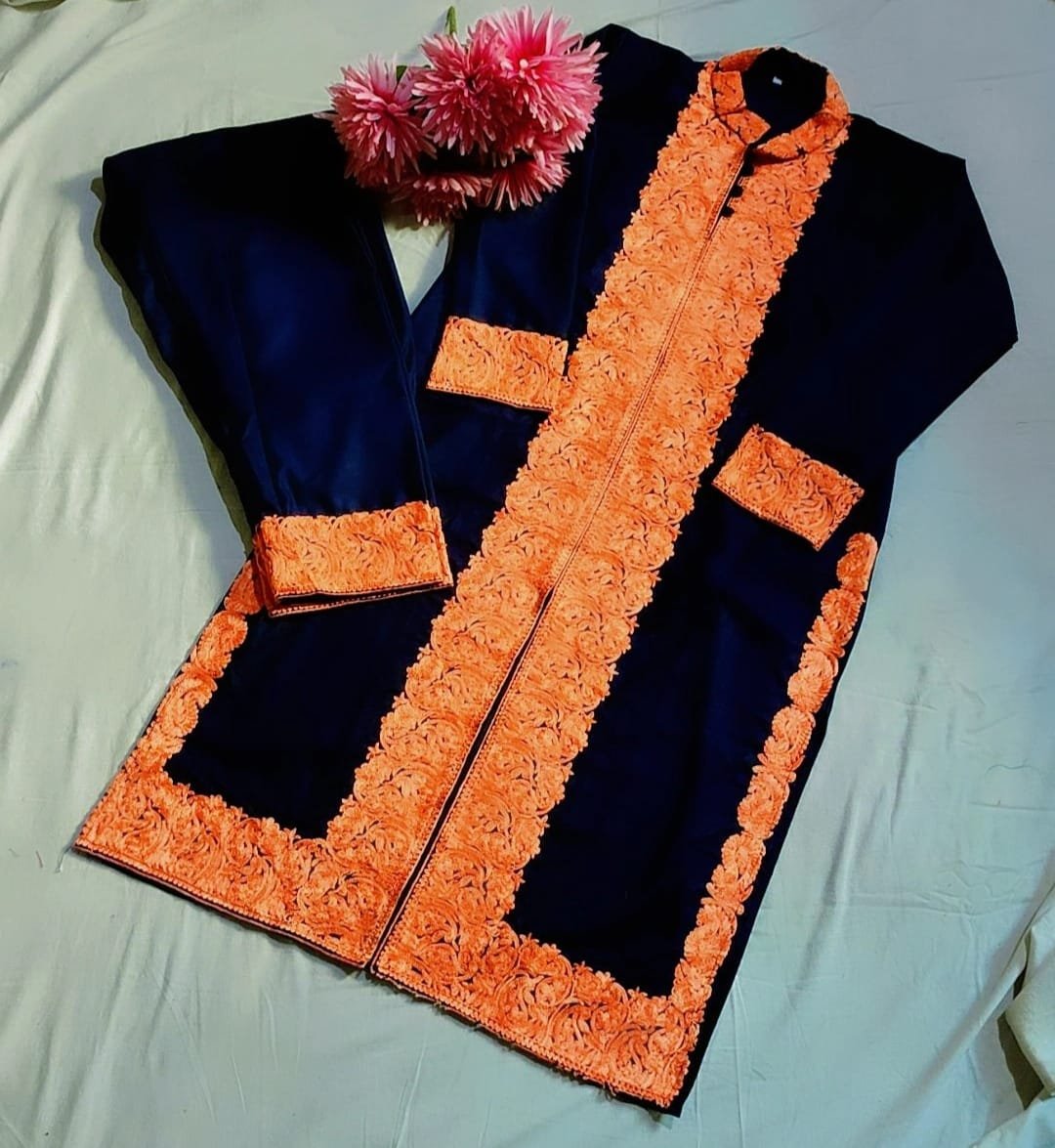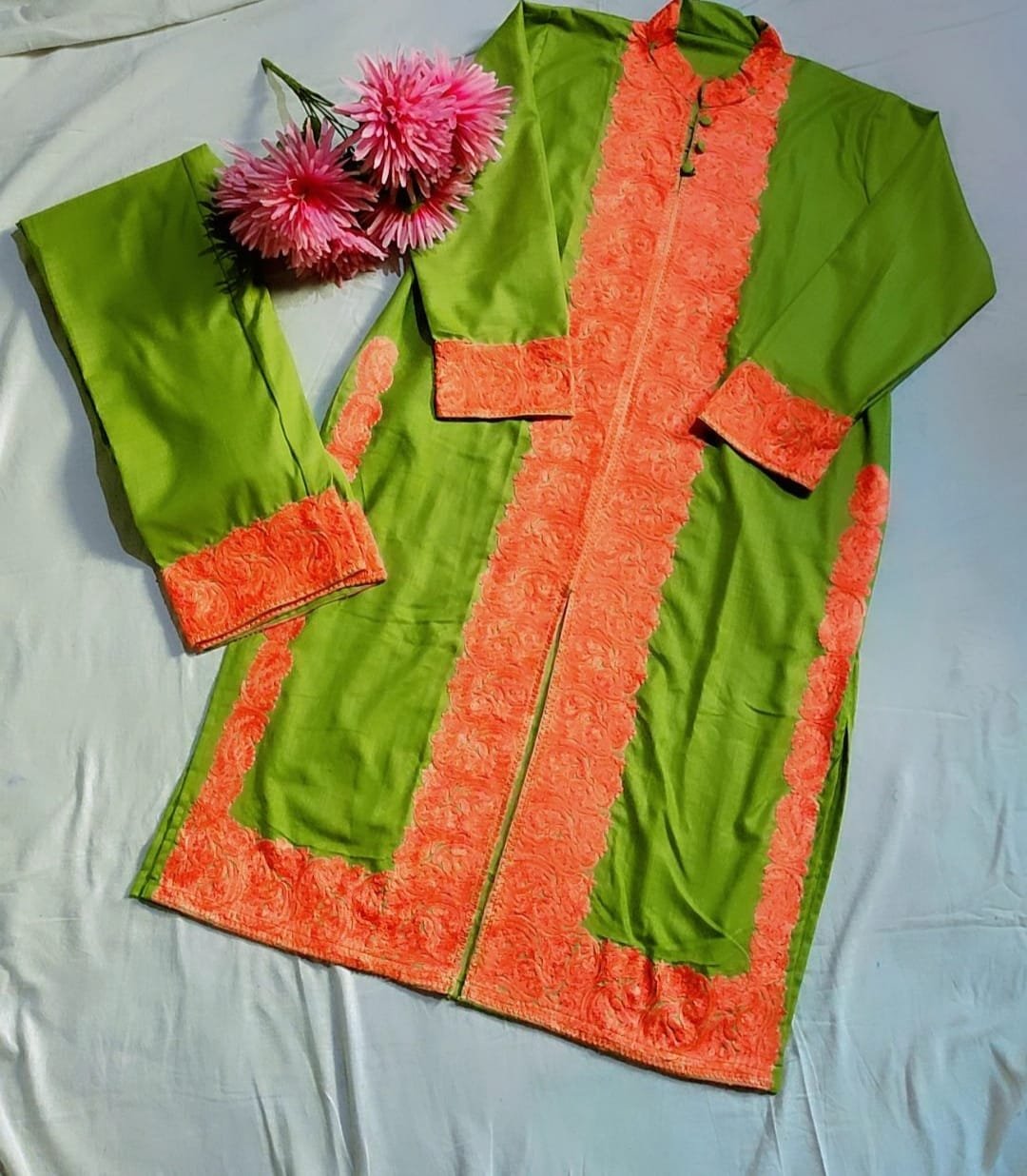 This 2-piece coordinated set features a stitched kurta with plazo, offering effortless sophistication and ease of wear. The kurta is adorned with intricate Kashmiri Ari work at the center, adding a touch of timeless beauty to your ensemble. The center slit design adds a contemporary flair, allowing for freedom of movement and a graceful silhouette.