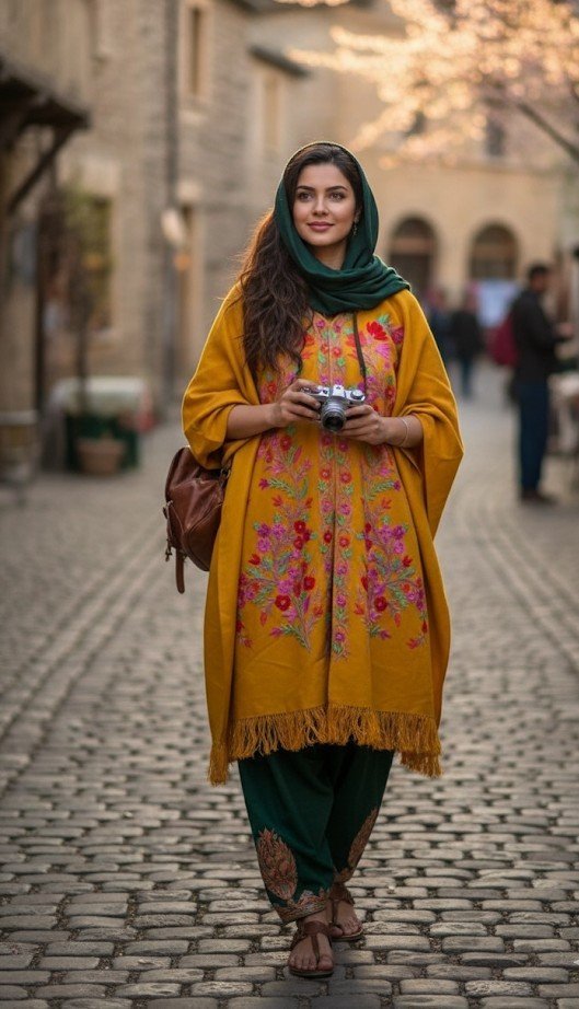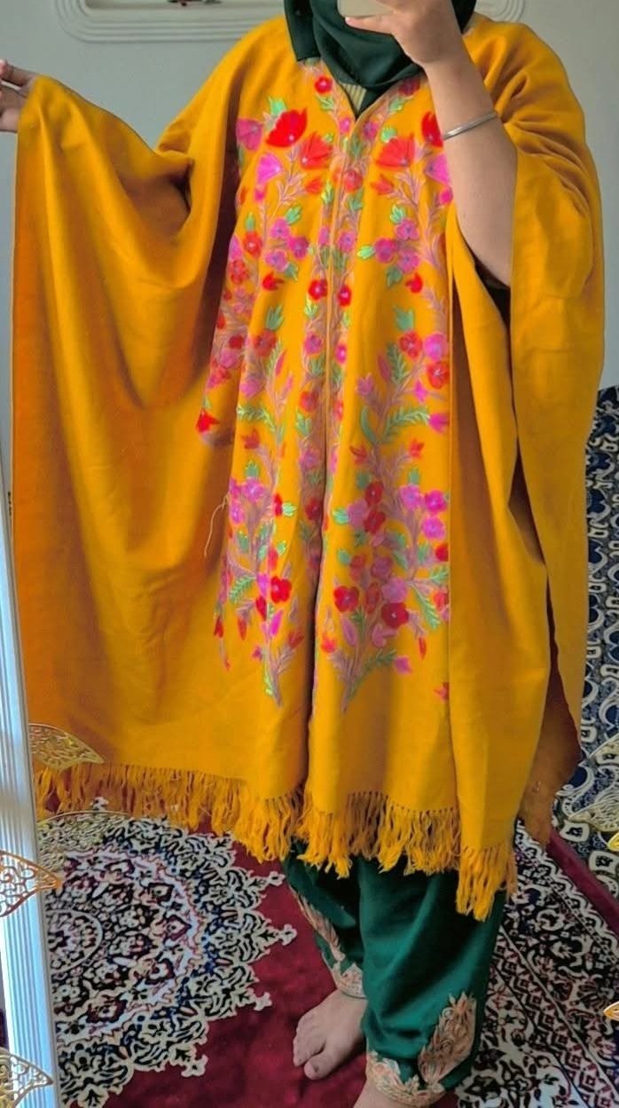 Pair this stunning cape shawl with ethnic wear for special occasions or drape it over western outfits for a fusion of luxury and culture. Whether it’s a winter evening or a garden gathering, this piece adds a touch of Kashmir’s timeless charm to your wardrobe.