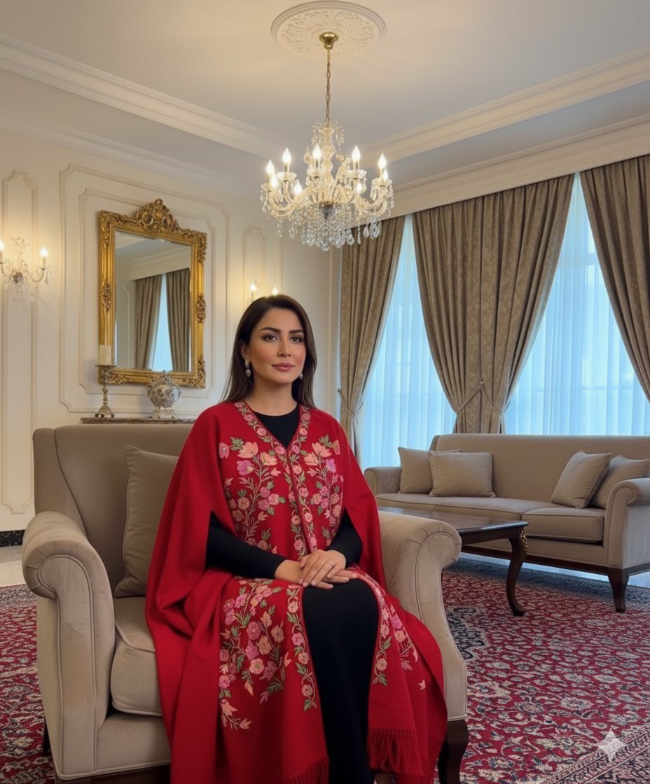 Made from premium-quality wool, the cape-style design drapes effortlessly over any outfit, offering both warmth and sophistication. The vibrant colors and floral patterns, meticulously embroidered by hand, make each piece a work of wearable art—unique, elegant, and full of heritage charm.
