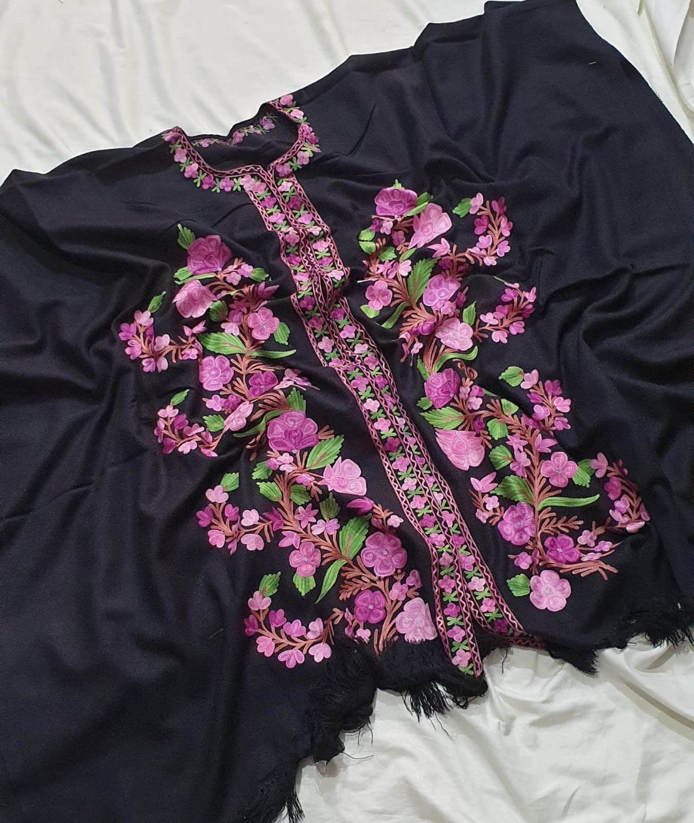 Be the first to review “Kashmiri Woollen Cape Shawl with Hand Ari Embroidery – Black”