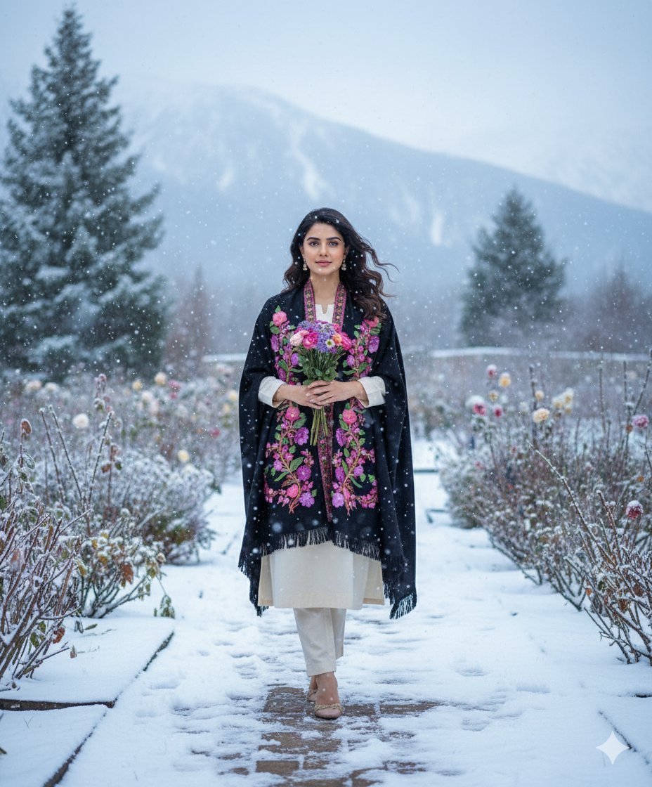 Pair this stunning cape shawl with ethnic wear for special occasions or drape it over western outfits for a fusion of luxury and culture. Whether it’s a winter evening or a garden gathering, this piece adds a touch of Kashmir’s timeless charm to your wardrobe.