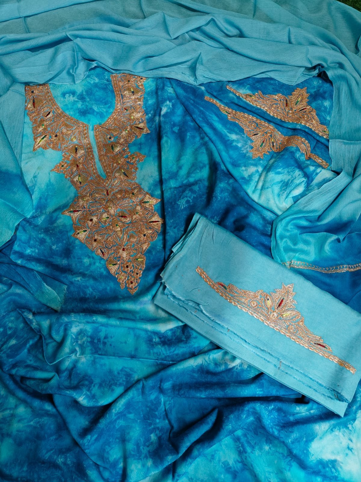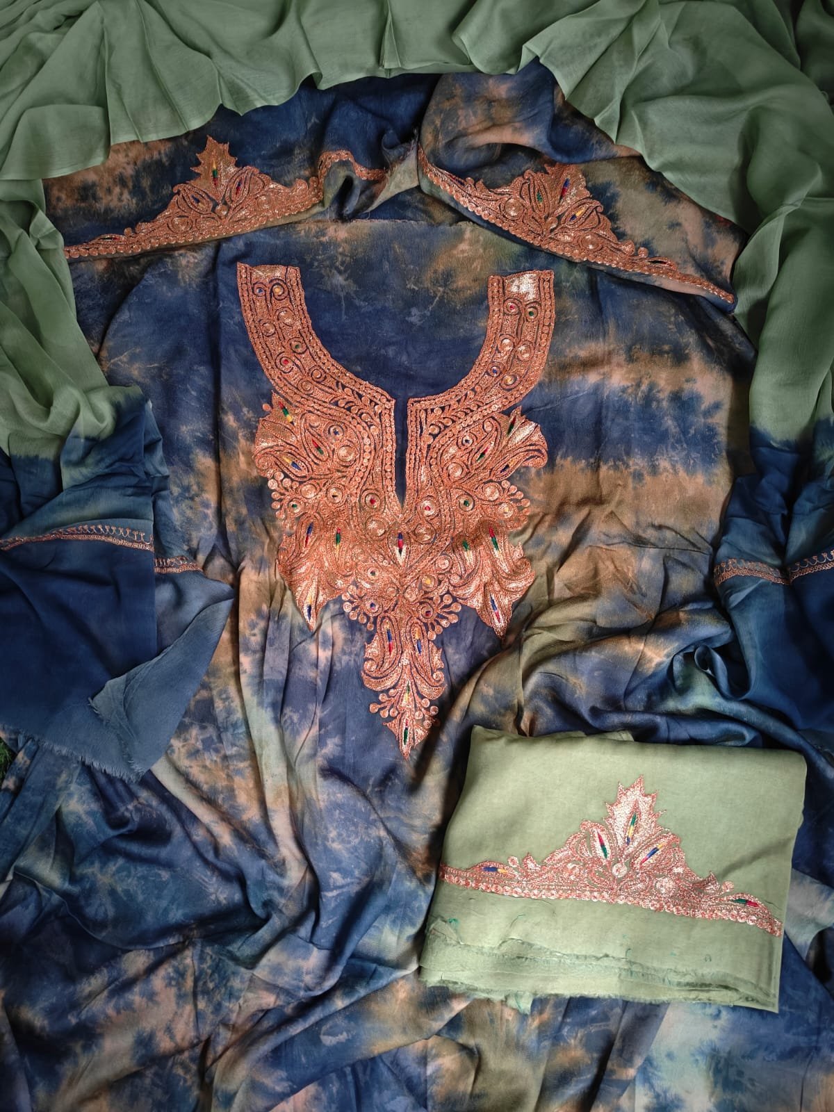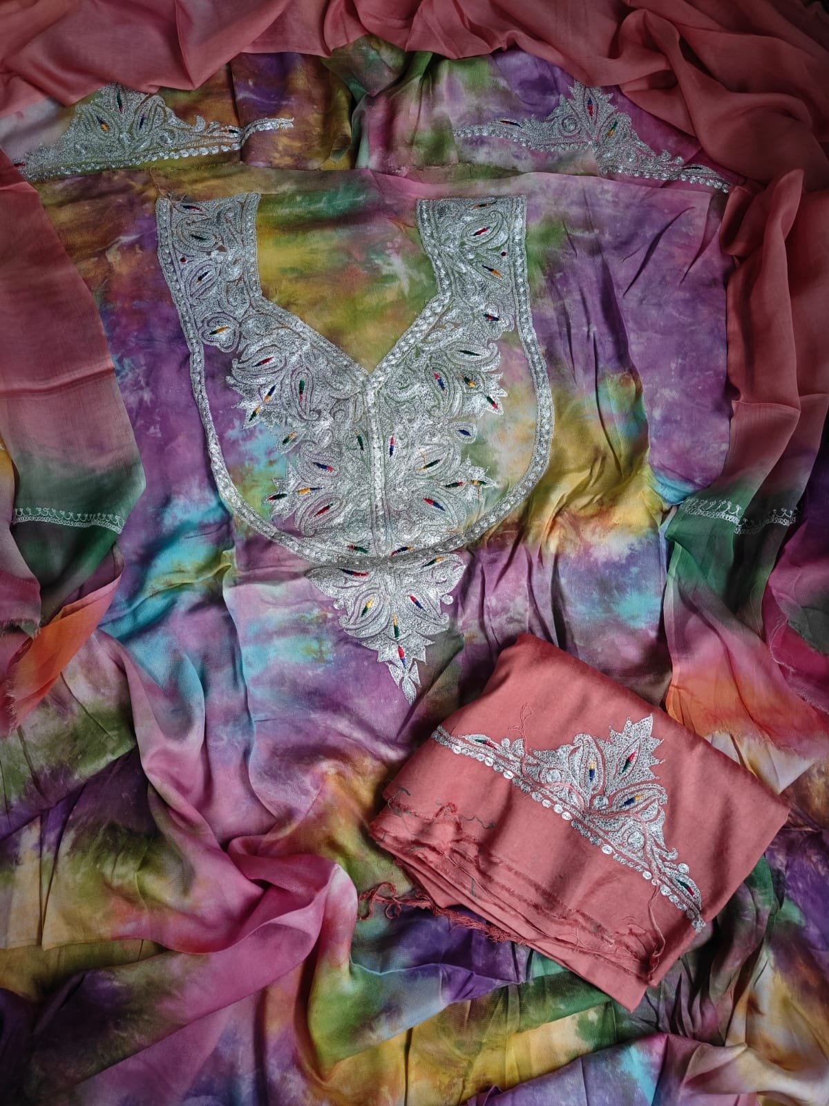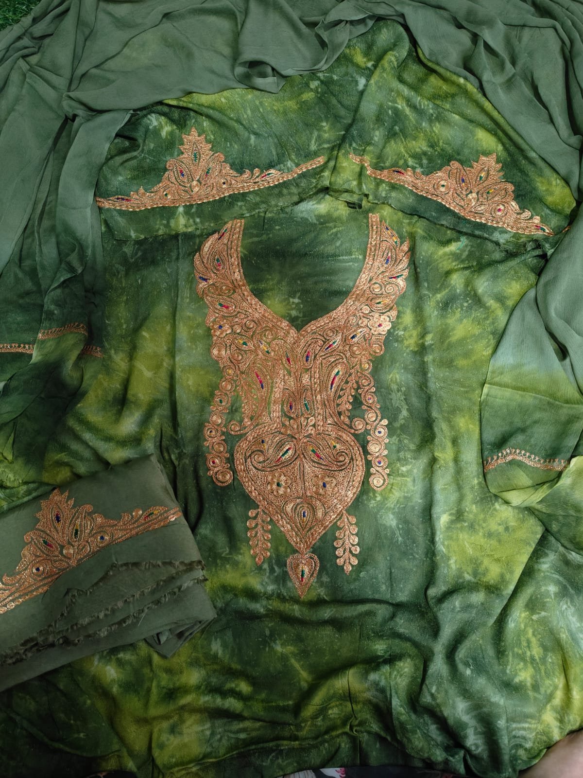 Dip-dyed half pure dupatta – hand-dyed with Tilla work on both ends