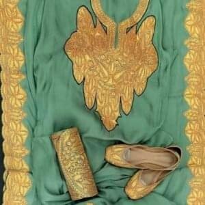 - Tilla Patch Embellishment: The set features beautiful Tilla patchwork, adding a touch of traditional Kashmiri embroidery with intricate metallic threads that shimmer with every movement.